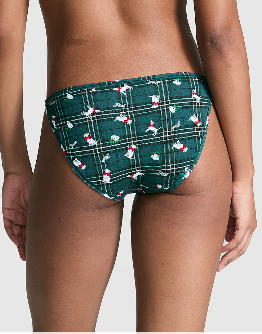 Cotton String Bikini Panty (Deep Forest Plaid Dog Print)